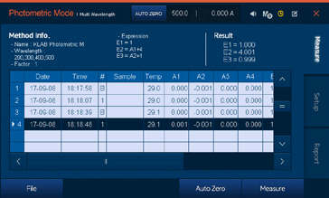 OPTIZEN POP共提供4種測量模式 (光度測量模式, 定量模式, 光譜模式, 動力學模式), 用戶可根據測量目的選擇使用相應的模式。用戶可以利用設備中內置的電腦軟件和觸屏界面, 應用程序來簡便地使用設備。