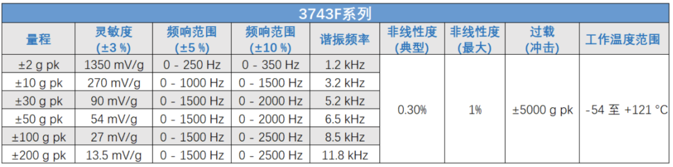 型號3743F利用變電容MEMS技術實現在寬輸入電壓范圍5-32V下的穩定**的測量。它在正交的三個軸(X,Y,Z)上同時測量加速度和低頻振動。