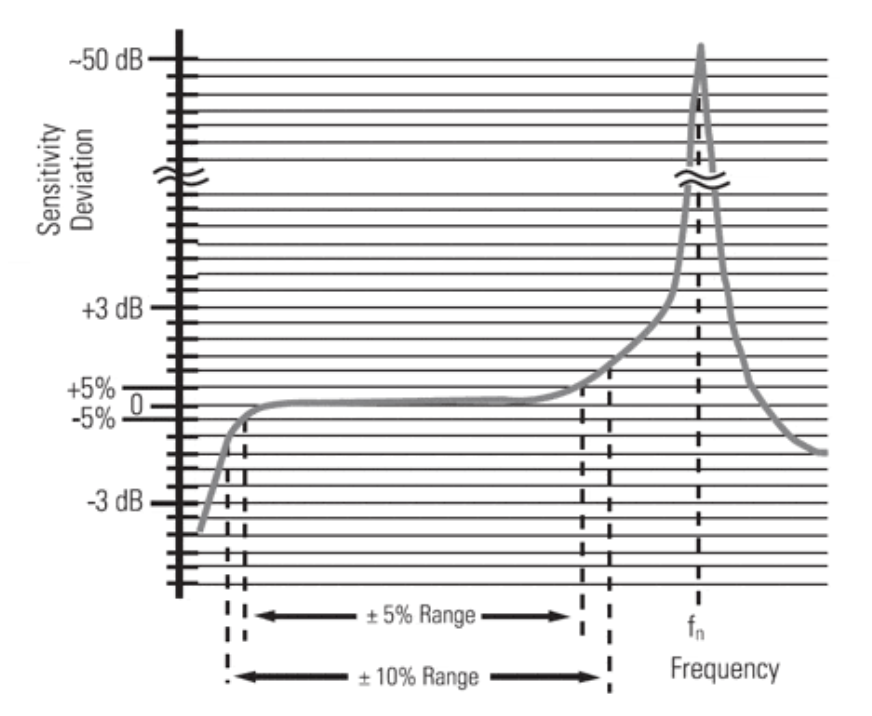 通常傳感器靈敏度偏差低于5%范圍內使用是可以接受的。而此時的高頻測量上限一般在接近傳感器固有頻率的20%左右。高頻響應可能受激勵電流、電纜長度和電纜電容的限制。