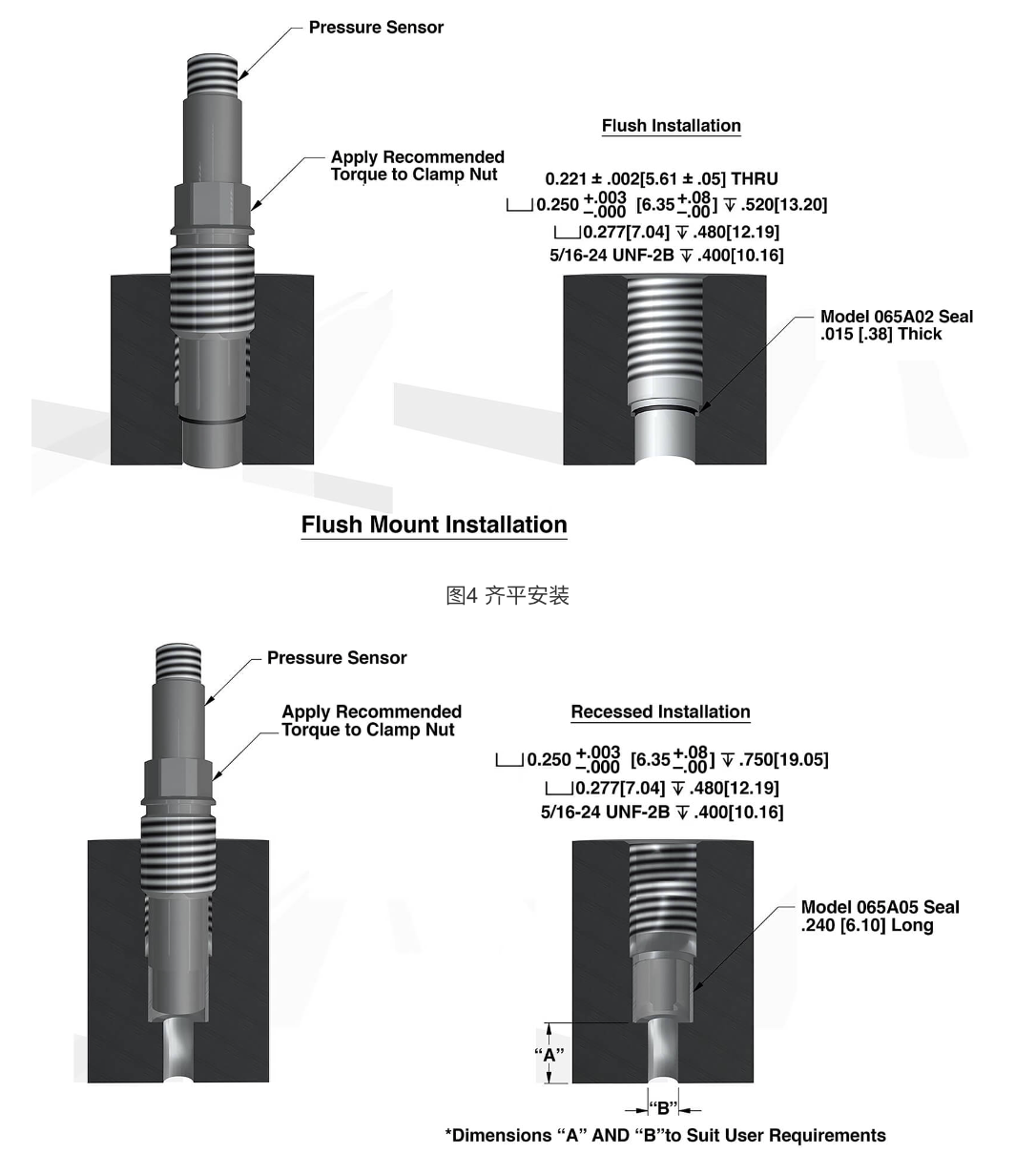 壓力傳感器的精密安裝對于**測試是至關重要的。每次安裝前請確認傳感器說明書中的安裝尺寸圖,當您有疑問時,請聯系PCB?工程師取得詳細的安裝指南。使用精密的機加工設備來安裝螺紋孔,并且使用推薦的安裝扭矩。請使用PCB?傳感器提供的安裝硬件,我們還提供不同標準的螺紋適配器來簡化一些傳感器的安裝。